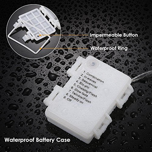 - 【Battery Case Button Change Everything】 8 modes for selections, such a Comb/Waves/Sequential/SLO-GLO/Flash/Fade/Twinkle/Steady-ON. Various modes for selections create vibrant, dynamic, joyful ambiance for your family and friend.