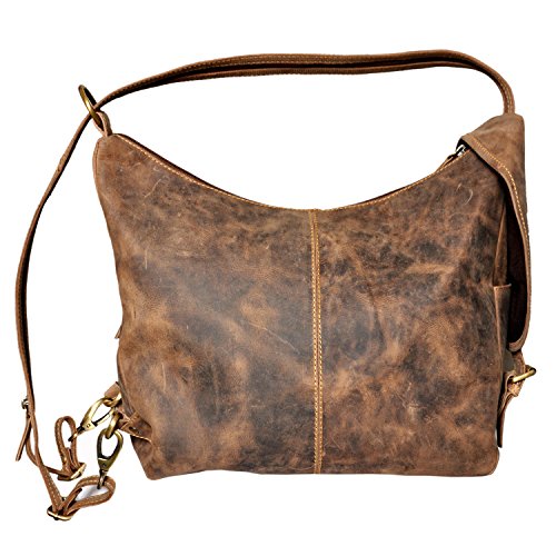Amorucio Vintage Brown Cow Hunter Leather Shoulder Hobo Tote Men/Women Back Pack Purse Bag