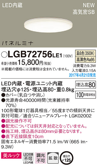 ●材質/色/仕上げ:カバー(乳白つや消し)