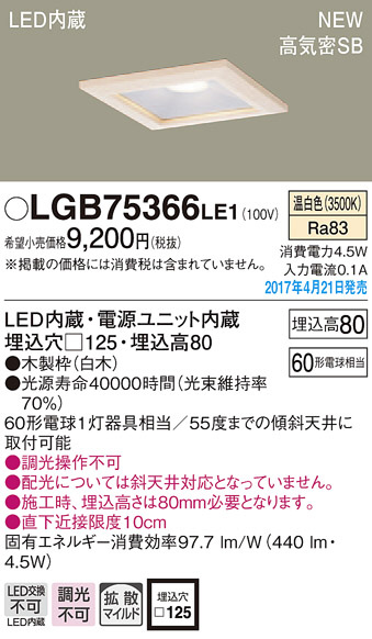 ●寸法(mm):埋込穴□125・埋込高80