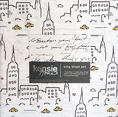 Kensie Bedding 4 Piece Microfiber Sheet Set Yellow Taxis Buildings New York City (King)