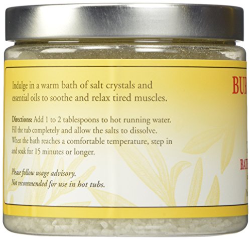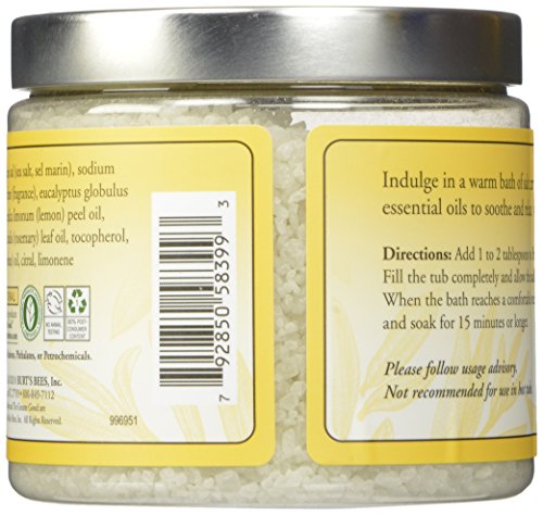 -. Feature : 1 pound jar of 100% natural scented bath salts / Made with natural sea salts and lemon and eucalyptus oils / Aromatherapy bath salts help soothe tired muscles / Soak in a tub of warm water and crystal bath salts to relax / Follow up with your favorite Burt's Bees lotion
