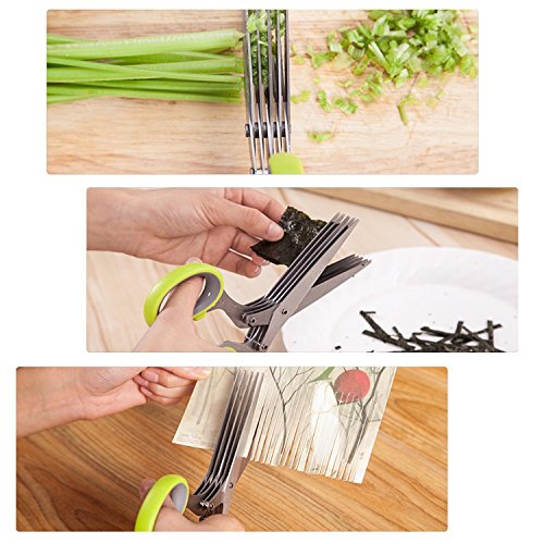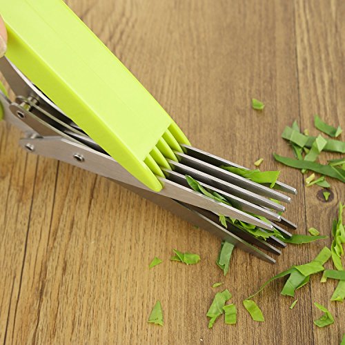 HAOJI Multifunctional Herbal Scissors 5 Layers Scissors Stainless Steel Blades Can Be Used for Kitchen Chopping and Office Cleaning, with Safety Cover and Cleaning Comb