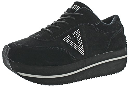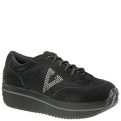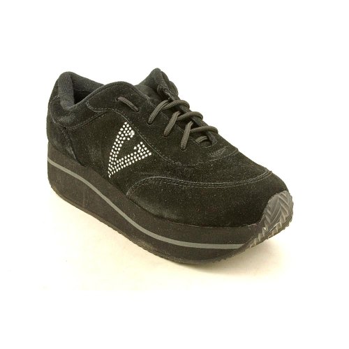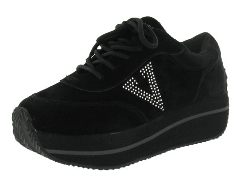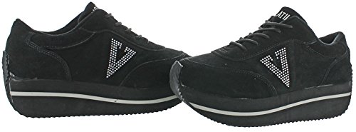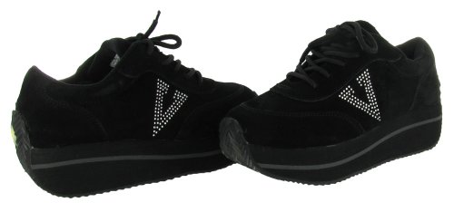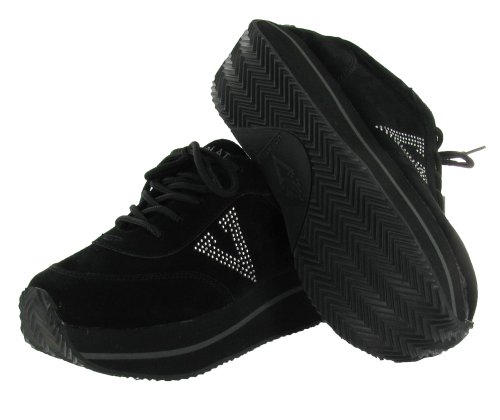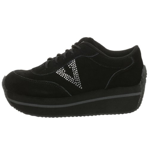 Product Description Pair these kicks with a mini, your favorite denim, or this season's latest silhouette#151;they're sure to elevate your favorite casual look to new heights. Fashioned in modish black suede, these cool kicks work with just about any ensemble and feature an attention-grabbing rhinestone "V" logo. A traction-ready corrugated rubber outsole, toe guard, and padded collar ensure a comfy ride. 0