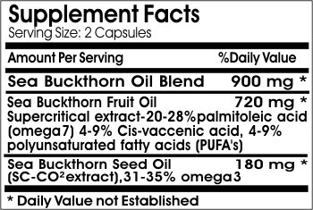 Studio : PureControl Supplements Publisher : PureControl Supplements Binding : Health and Beauty Product Description Sea buckthorn has a long history of use, having been used by Indian and Tibetan Ayruvedic practices for more than a millennium. In fact, it has been called a "wonder plant" in many Asian countries. Sea Buckthorn fruit features a variety of naturally-occurring compounds, including palmitoleic acid (omega-7), carotenoids, tocopherols, flavonols and phenolic acids. Sea Buckthorn is a hardy, deciduous shrub native to Central Asia and Europe and now grows in North America. Contains no added yeast, sugar, salt, starch, soy, wheat, gluten, dairy, artificial colors, preservatives or artificial products. DIRECTIONS: For adults, take two (2) capsules daily, preferably with meals. 0