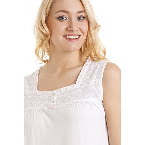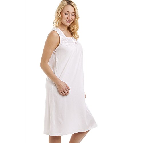 -. Title : Damen Nachthemd ohne Ärmel - Modal & Baumwolle - Weiß