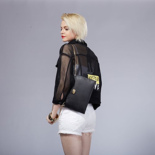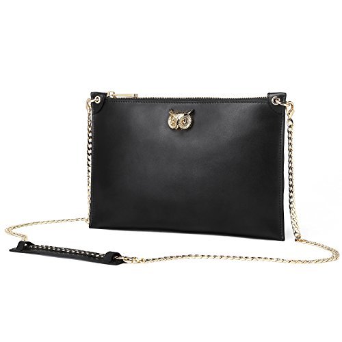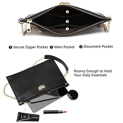 Womens Soft Leather Stylish Cross-body Shoulder Bag Youth Girl Large Pouch Lightweight Envelope Clutch Bag Evening Handbag Zipper Pocket Party Purse With Chain Strap