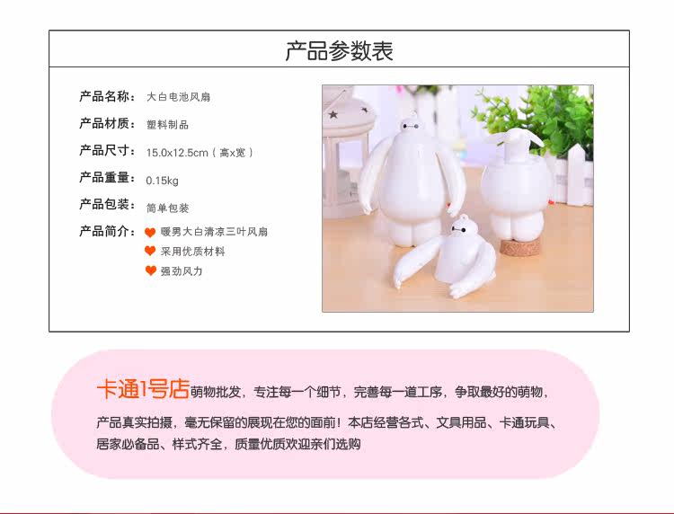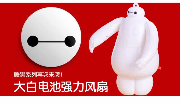 超能陆战队大白胖子;创意电池小风扇,风力强劲,静音效果良好,安全有保障,迷你尺寸绝对适合您办公室、宿舍、教室的需求,居家日用、办公生活、节日送礼必备选择!!!