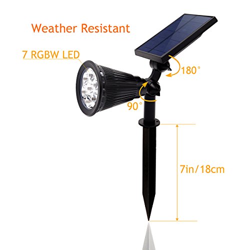 - Add Multi Color & Super Bright Solar Powered LED Garden Uplighting to trees, walls, statues, pools, walkways, doors, fencing, flags, lawns, driveway, pathways, plants, etc. You can choose auto gradient the colors or one color to stay on. Red & Green & Blue & Orange & Sky-blue & Pink & Warm White (3000K) light change.