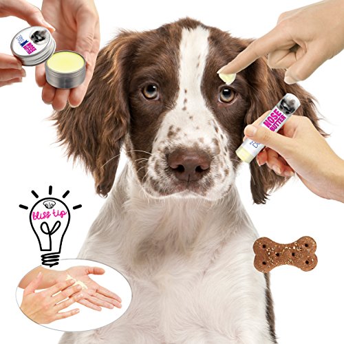 Many dogs have a tendency toward a dry, crusty nose condition, frequently called nasal hyperkeratosis. While any dog can have this condition some breeds have even more of a predisposition toward dry noses; French Bulldogs, Boxers, Pugs, Bulldogs, most Bully type and Mastiff breeds and their mixes. NOSE BUTTER was developed specifically for this condition. NOSE BUTTER For Dry or Crusty Dog Noses. All natural, rich moisturizers soften and smooth your dog's dry, crusty, cracked nose. NOSE BUTTER is individually handcrafted in far northern Minnesota (yes, it is science fiction cold in the winter) using all natural and organic good stuff: shea butter, olive oil, castor oil, avocado oil, almond oil, coconut oil, beeswax, cocoa seed butter, a dash of essential oils and love. NOSE BUTTER USAGE: DAB a bit onto your dog's nose 1-3x a day for 2-3 days (until nose improves) and then as needed for maintenance (usually1-2x a week). DISTRACT with a treat (keeps them from licking NOSE BUTTER off while it moisturizes).DONE! Complete directions, tips, hints and Dog Nose info is available.Feature