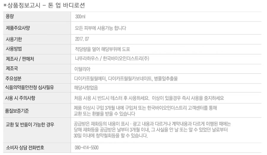 제조자:나뚜라하우스/제조판매업자:한국바이오인더스트리 |