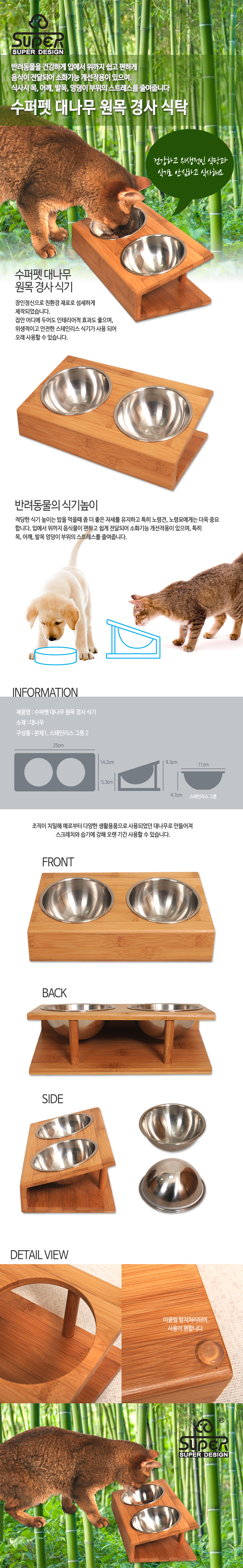 Wooden slope dining table stainless steel tableware dog bowl cat dog bamboo