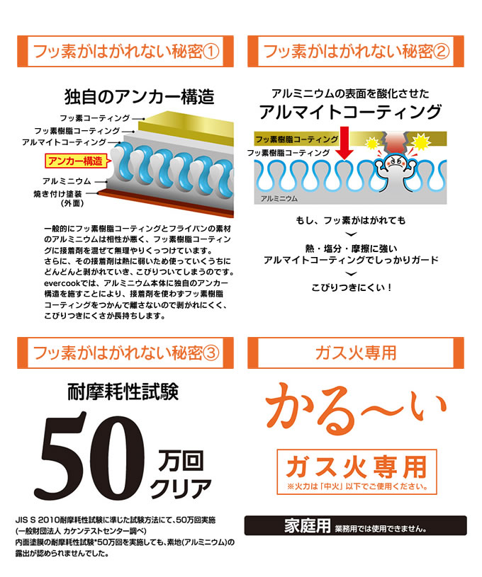 更にフッ素樹脂のはがれに対して一年保証付き