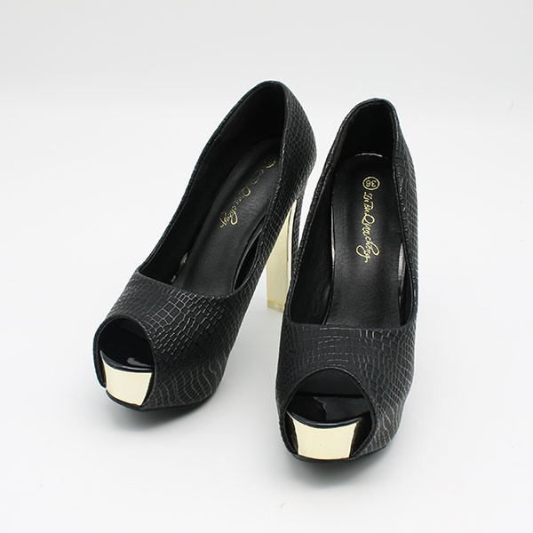 | 商品説明 | レザー調 厚底 オープントゥ ストーム パンプス♪ 美脚効果の高いストーム付きパンプスです。 ゴールドカラーのアクセントが高級感をプラス♪ |