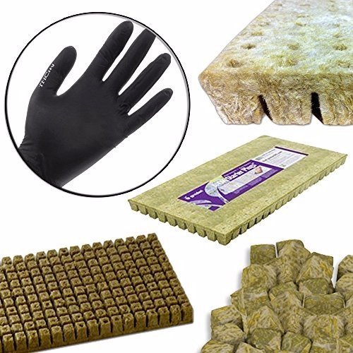 GRODAN A OK Rockwool Stonewool Hydroponic Grow Media Starter Cubes Plugs + THCity Gloves - 1" x 1" - 50 Piece