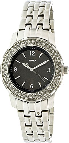 -. Title : Timex Starlight Ladies Crystal Black Floral Dial Quartz Watch T2P397