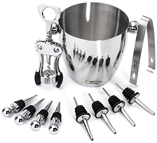 For a change of pace or guests who prefer wine to cocktails, the Buddy 16-Piece Cocktail Bar and Wine Set also includes everything you need to chill, service and preserve wine, champagne, or cider.