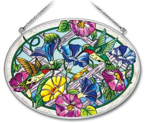 Amia 41715 Hand-Painted Large Oval Suncatcher Glass, 9 by 6-1/2-Inch, Hummingbird and Floral Design