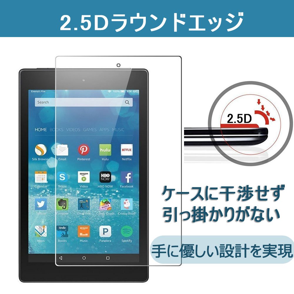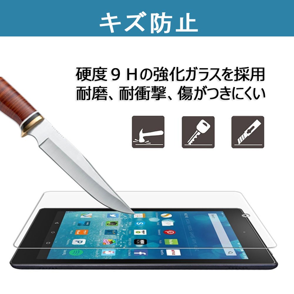 Hardness 9H By adopting hardened coated tempered glass, the Fire HD 8 protective film firmly protects the LCD screen from various everyday substances such as keys and coins.