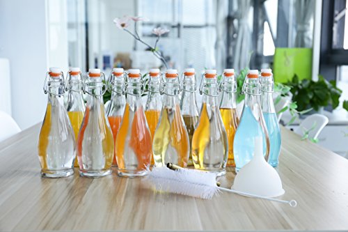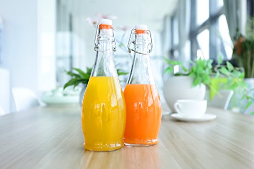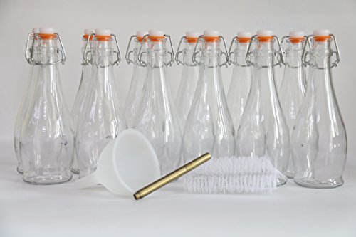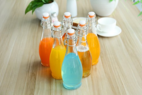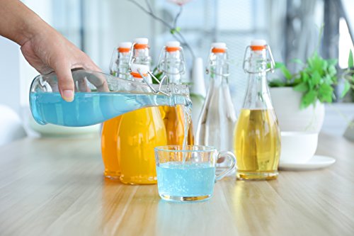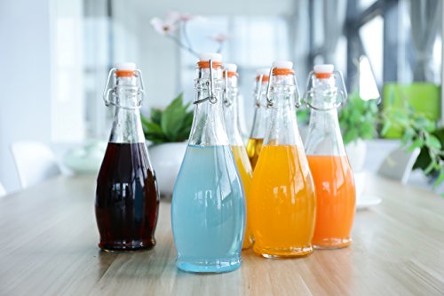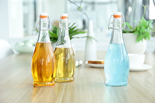 - 16.9 Oz Bottles. - Clear and transparent to easily identify what is in the bottle. - Reusable and eco friendly. - Simple flip top style for bottling. - Narrow neck making it easy to pour and avoiding any waste spills. - Sturdy with steel wire assembly and a thick rubber gasket to complete the seal and help preserve the bottles contents.