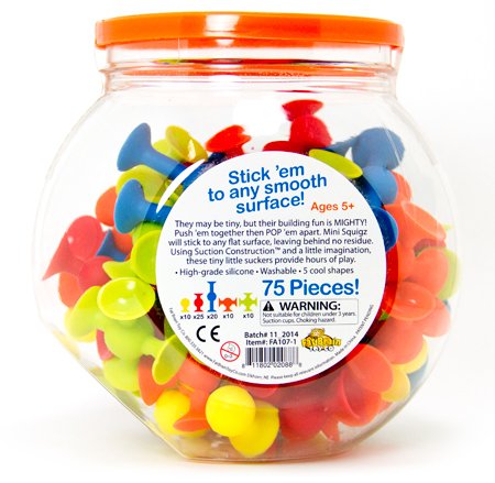 -. Feature : A new, miniature version of the original Squigz / Encourages fine motor dexterity, visual-spatial skills, expressive creativity / 75 pieces included in each set - More building possibilities / Made from high-grade silicone - Highly durable and safe / Fully Washable