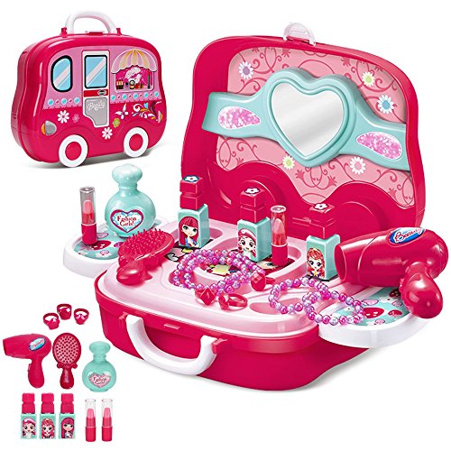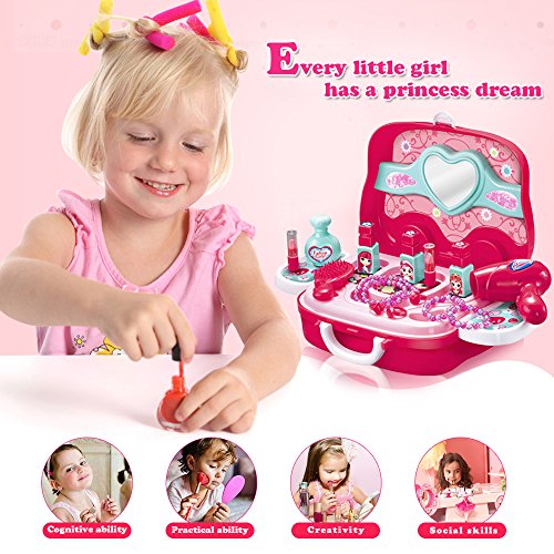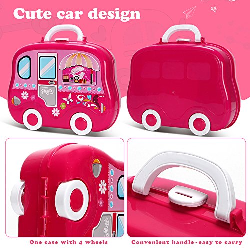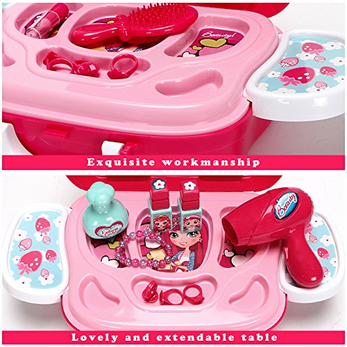 ✔PORTABLE GIFT BOX - Give your little girls a big surprise,she can play at home and outside.This suitcase also can be used as storage box,cultivate their finishing ability at the same time. A truly reassuring toy,age 3yrs and up.