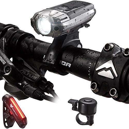 Stay safe while cycling These bike lights have solved the following problems that were mentioned by our customers: unsafe installation, faulty assembly, poor spatter resistance, and short circuit.Light your way off at night, and make sure that the other people can see you on the road. Easy installation 1. Loosen the screw and secure the bracket to the bike. Then you can simply tighten the screw without tools. 2. Press the button on the holder. Slide the bicycle light out of the bracket in seconds to disassemble it, quickly and conveniently! Specifications 1. Battery: Front light: 1200 mAh Tail light: 500mAh 2. Rated power: 3W Package: 1 * Front light 1 * Tail light 1 * Bicycle handle 2 * bracket 2 * USB cable 1 * webbing 1 * Manual Tips The bike bell should be pushed down, then you can let it go. 0 |