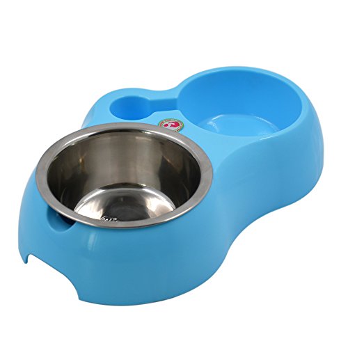 Product Description Water Food Pet Feeder Removable Stainless Steel Bowl with Automatic Water Feeder for Dogs Cats and Small Pets, Blue 0