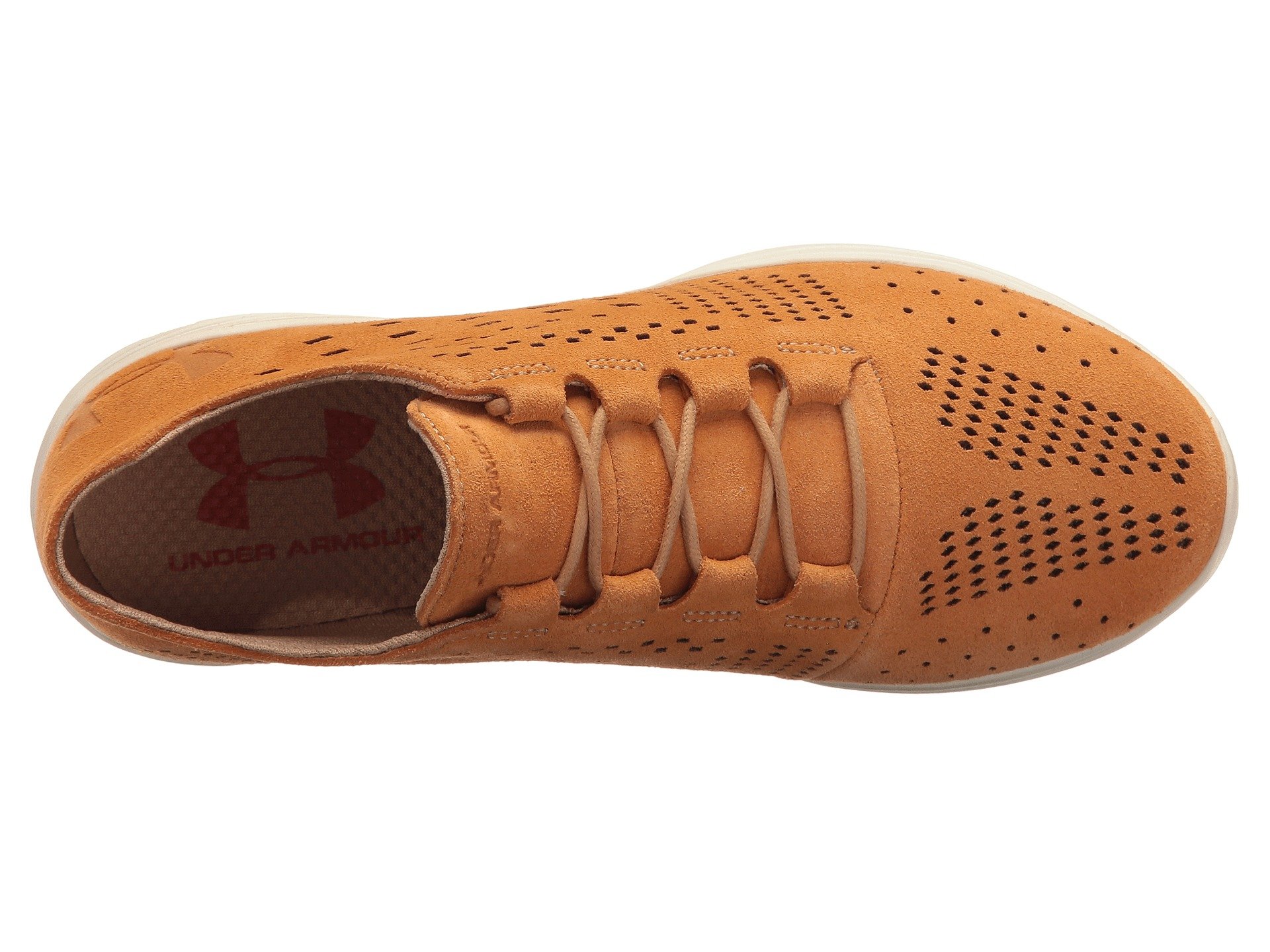 | Product Information SKU: #8798962Sporty and casual-chic come together in the fresh styles of the Under Armour? UA Street Precision Low Tinted Neutrals sneaker. Synthetic suede upper boasts allover laser-cut perforations. Lace-up closure. Slightly padded tongue and collar. Comfortable fabric lining offers a great in-shoe feel. Die-cut Micro G? footbed. Low-profile midsole supplies comfort and stability for casual wear. Anatomical outsole with strategically-placed rubber pads in high-traction areas. Imported. Product measurements were taken using size 7.5, width B - Medium. Please note that measurements may vary by size.Weight of footwear is based on a single item, not a pair.Measurements: Weight: 6 oz |
