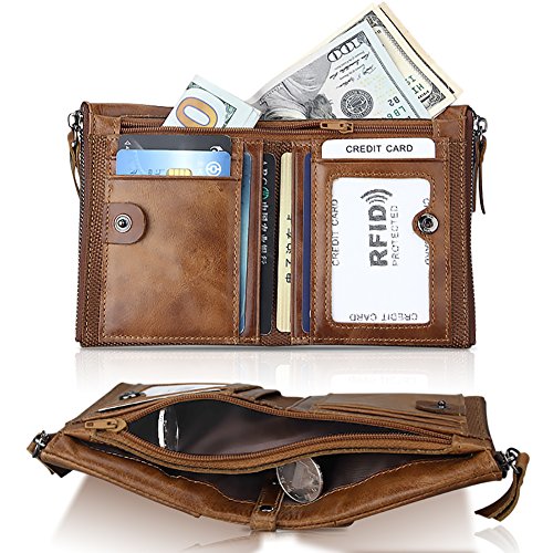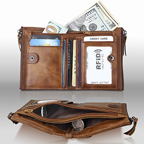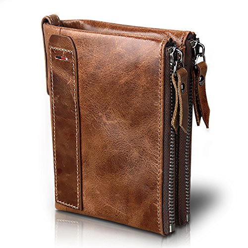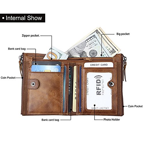 | (wonally)/Accessories/Wallets, Money Key Organizers/DIRECT FROM USA/Genuine Leather Men‘s Woman's Wallet Business Casual Traveler Purse Double Zipper CreditID Car... |