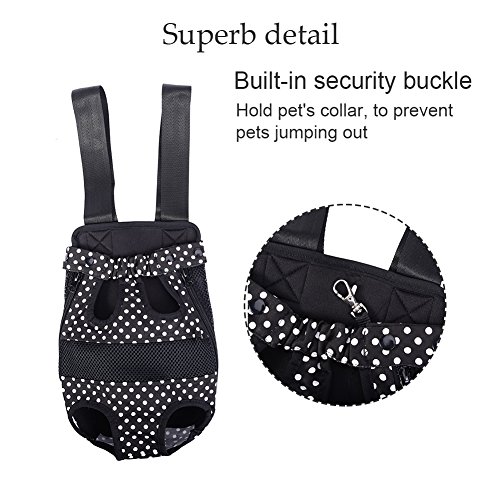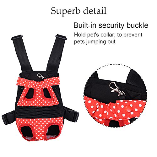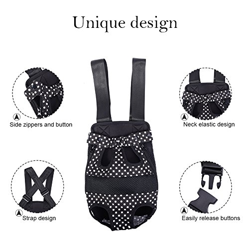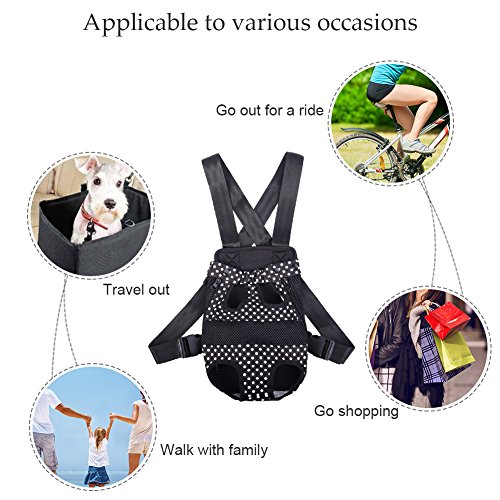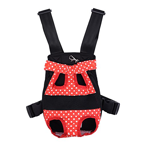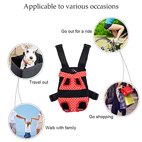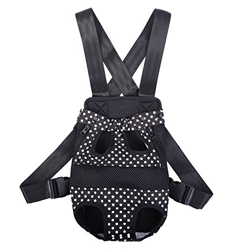 -. Feature : S: Chest: about 38 cm / 14.96 in;Distance between front and back leg: about 9 cm / 3.54 in;Item overall length: about 28 cm / 11.02 in / Pet travel carrier works fine, can let the pet with the owner of zero distance contact, it is easy to carry and safe to use. / You can take your beloved dog together anywhere and anytime when you want with the dog front carrier/ dog backpack carrier. / Different from the box-type pet backpack, it can keep the pet's head, tail and legs outside, making your pets enjoy sunshine and fresh air. / Small Size for pets up to 1.5-2.5 kg, Medium for 2.5-4 kg, Large for 4-7 kg, X-Large for 7-9.5 kg