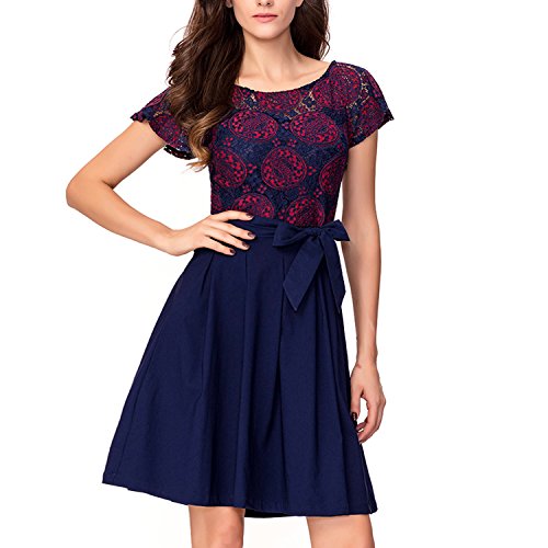 Noctflos Women's Vintage Floral Lace Contrast Bow Cocktail Swing Tea Dress