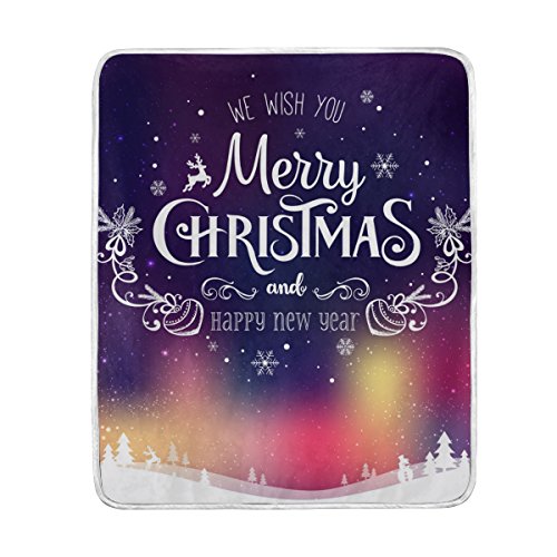 (ALAZA)/Bedding Bath/Bedding/DIRECT FROM USA/U LIFE Merry Christmas Tree Deer Elk Snowflakes Soft Fleece Throw Blanket Blankets for Nap Couc...