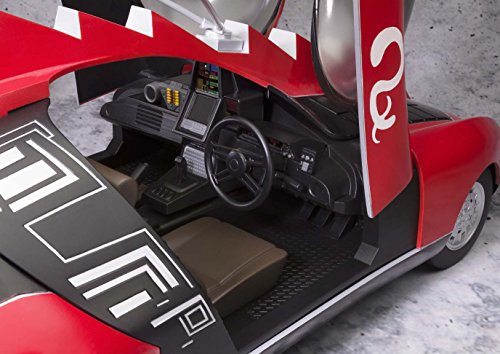 S.H.Figuarts 仮面ライダーBLACK RXシリーズ最後のマシン、ライドロンが遂に商品化!グランチャーの展開ギミックや、車体背部に設置されたスペクトラムスクリューが後輪に連動して回転するギミックを内蔵。ドアは左右とも開閉が可能で、S.H.Figuarts 仮面ライダーBLACK RXを乗り込ませる事が可能。