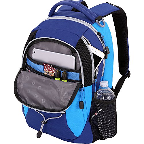 -. Feature : Head back to school, around town or on your next weekend adventure in style with the Swiss Gear purple laptop backpack. / Large main compartment with built-in padded, laptop sleeve designed to fit most 15" portable computers / Integrated, padded tablet pocket and 2 mesh side pocket drink holders. / Padded, Airflow back panel with mesh fabric for superior back ventilation and support. / Organizer pocket with key clip and divider. Ergonomically contoured, padded shoulder straps with breathable mesh. - 19"