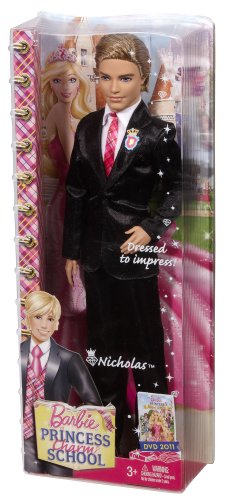 -. Binding : Toy -. Brand : Barbie -. EAN : 0885479231984 -. Feature : Inspired the new animated Barbie movie, Barbie P.R.Incess Charm School / Girls will love playing out scenes from the movie / Help P.R.Ince Nicholas accompany P.R.Incess Blair to the End of Year Royal Ball / This P.R.Ince is seriously dressed to impress / P.R.Ince Nicholas is wearing in stylish black satin suit, pink plaid tie, fun school crest and cool rooted hairdo -. IsAdultProduct : 0 -. Label : Mattel -. Manufacturer : Mattel -. Model : V6828 -. MPN : 329157 -. PackageQuantity : 1 -. PartNumber : 329157 -. ProductGroup : Toy -. ProductTypeName : TOYS_AND_GAMES -. Publisher : Mattel -. ReleaseDate : 2011-07-01 -. SKU : FK-SXDK-J7YH -. Studio : Mattel -. Title : Barbie P.R.Incess Charm School P.R.Ince Nicholas Doll -. UPC : 791068481558 -. Warranty : 1 year warranty against manufacturer defects