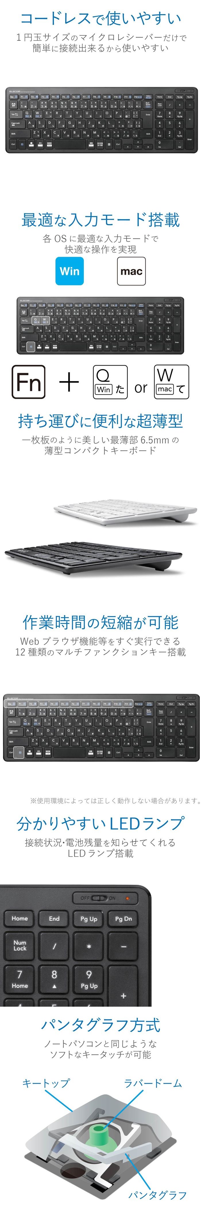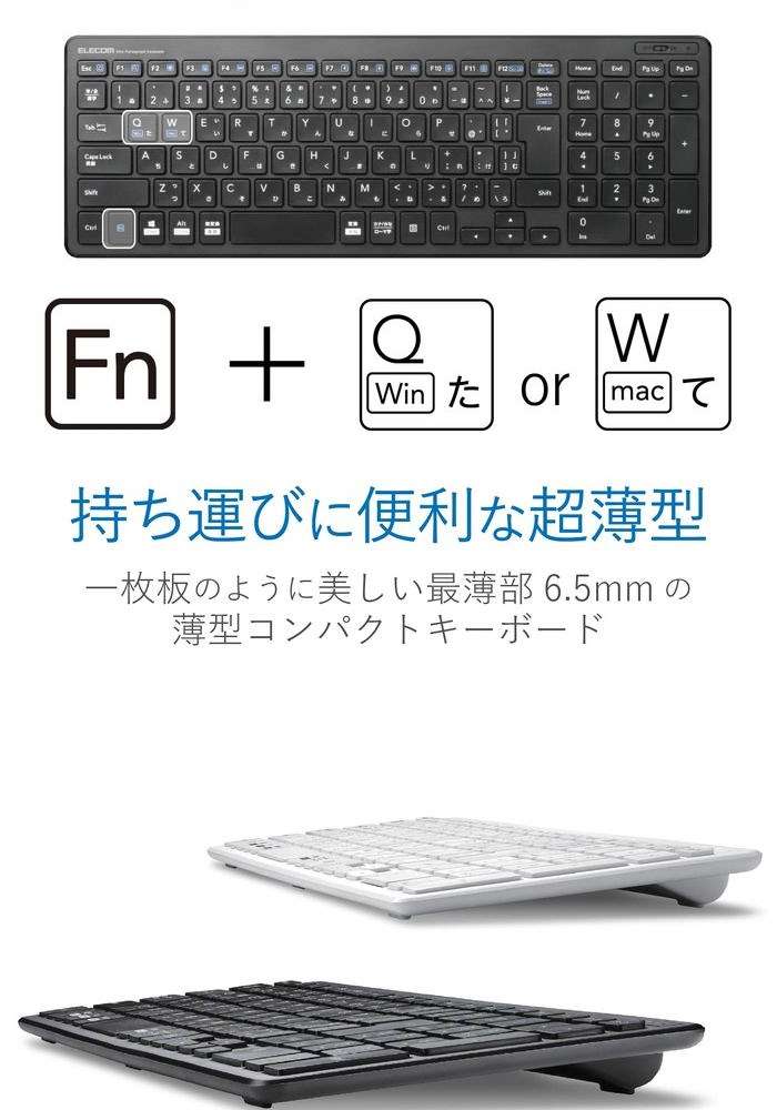 ●一枚板のように美しい最薄部6.5mmの薄型設計! 安定した通信で快適に操作できる2.4GHzの無線薄型コンパクトキーボード。