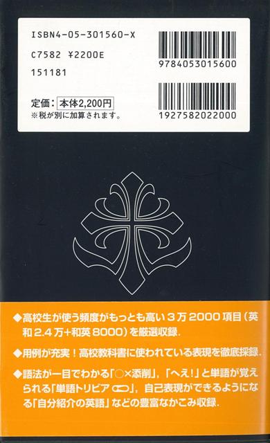 【商品説明】 定価(税込み):2,376円 値引き:5% OFF やさしく英語へアクセスできる辞典。教科書にぴったりの用例を完全網羅。独自のデータベースより高校生が使う頻度の高い語を厳選収録。「単語トリビア」「自分紹介の英語」などユニークな囲み満載。巻末和英小辞典つき。 バーゲンブック 新品 特価 格安 子ども ドリル 就学児生向け参考書 問題集 辞書 英語 えいご 洋書 就学 参考書 辞典 英和 和英 高校生 |
