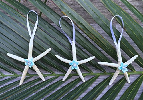 Nautical Crush Trading - Natural Starfish 4" Christmas Ornament with Light Blue Flower - Set of 3