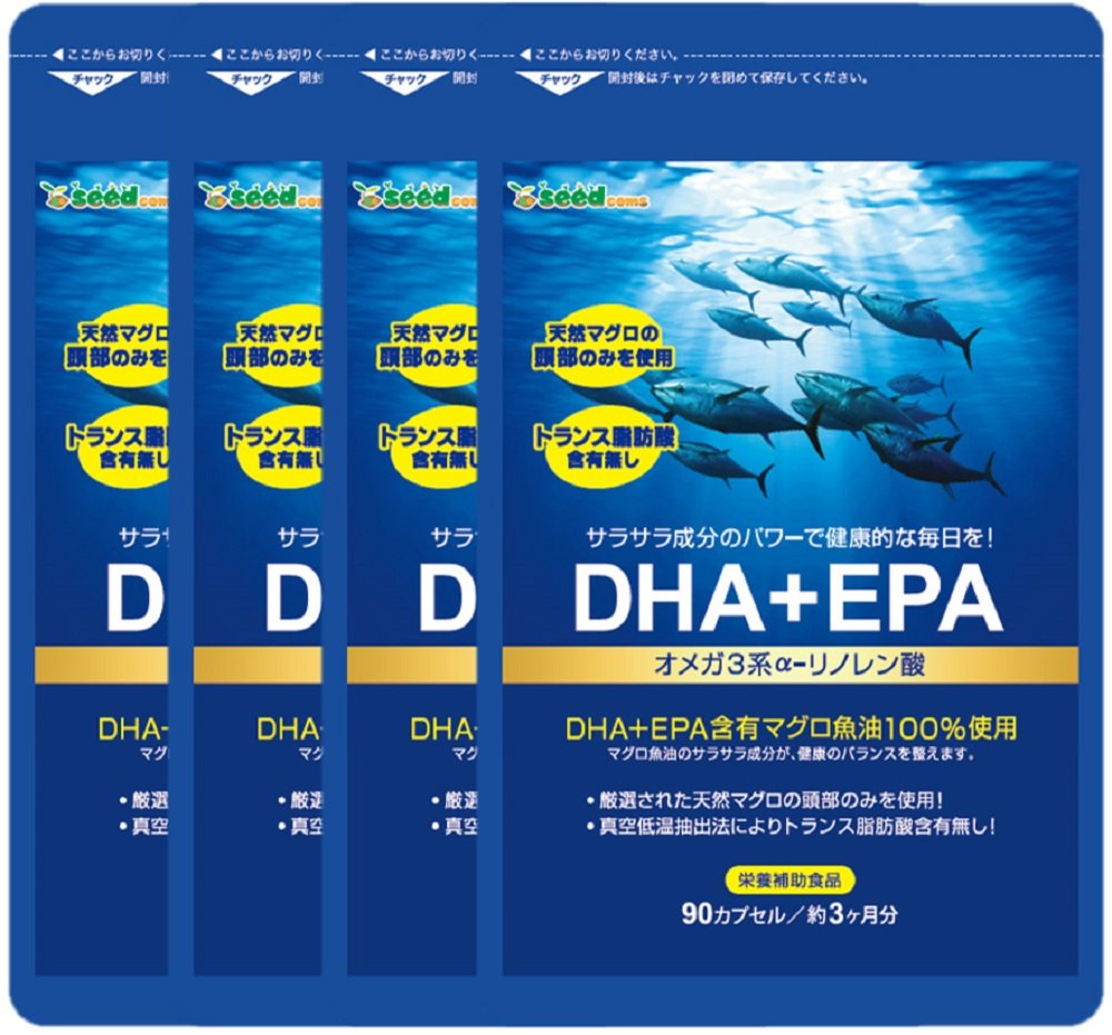 内容量:(1粒450mg×1粒内容量300mg)×360粒 天然マグロを100%使用したDHA+EPA。 サラサラ成分で、ドロドロの流れをスムーズににし、毎日の健康ケアにお役立てください。放射能検査や水銀検査も実施済でどちらも検出無しだから安心です!トランス脂肪酸が0㎎です。 1粒(カプセル/包)あたりの含有量 ●DHA,EPA含有魚油/300㎎ 1粒300mgあたりDHA30%(90mg)、EPA7%(21mg)