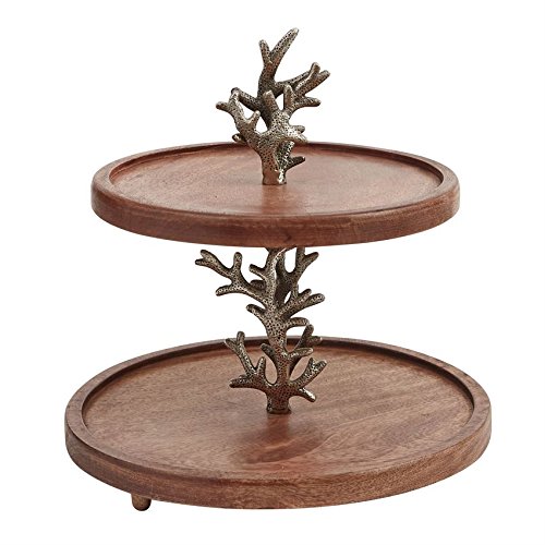 Product DescriptionMango wood tiered server from Mud Pie features coordinating ball feet and textured cast aluminum Coral center rod.0