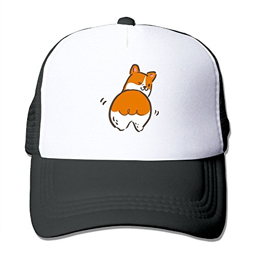 (FUNINDIY)/Accessories/Hats/DIRECT FROM USA/Cute Corgi Trucker Hat Summer Mesh Cap With Adjustable Snapback Strap Black