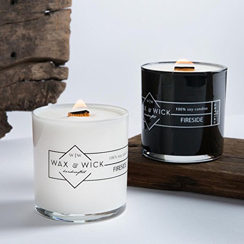 - CRACKLES AS IT GLOWS: Each Fireside Soy Wax Candle has 2 wooden wicks for a brighter, cozier glow. One wick crackles, one doesn't... so you get that homey fireplace effect PLUS an even, consistent burn.
