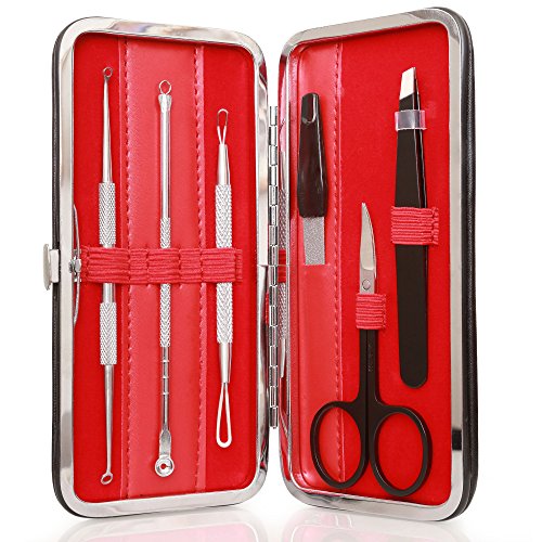 Comedone Extractors and Blackheads Remover - with Tweezers & Manicure Set By Aotearoa Beauty; Professional Comedone Remover Tools for...