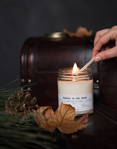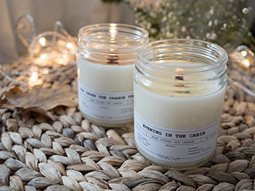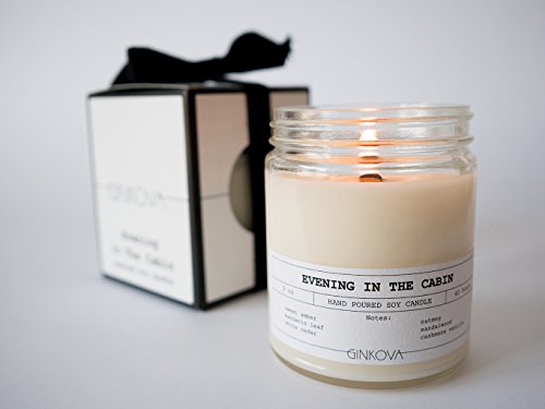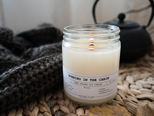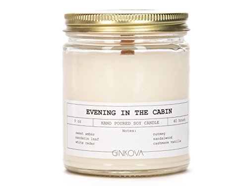 Ginkova | Scented Candle | Hand-poured Soy Wax | With 100% Natural Essential Oils | Glass Jar | Aromatherapy | Relax | 9 oz | Evening In The Cabin | Cedar Cinnamon Cardamom Nutmeg Sandalwood Vanilla