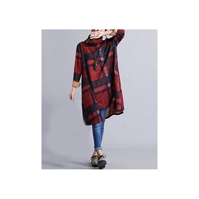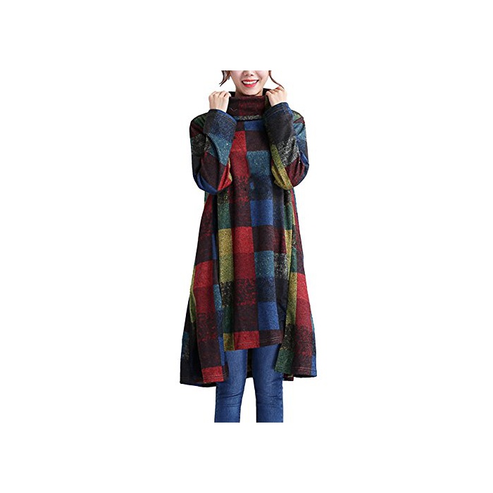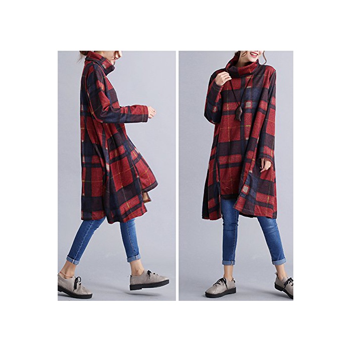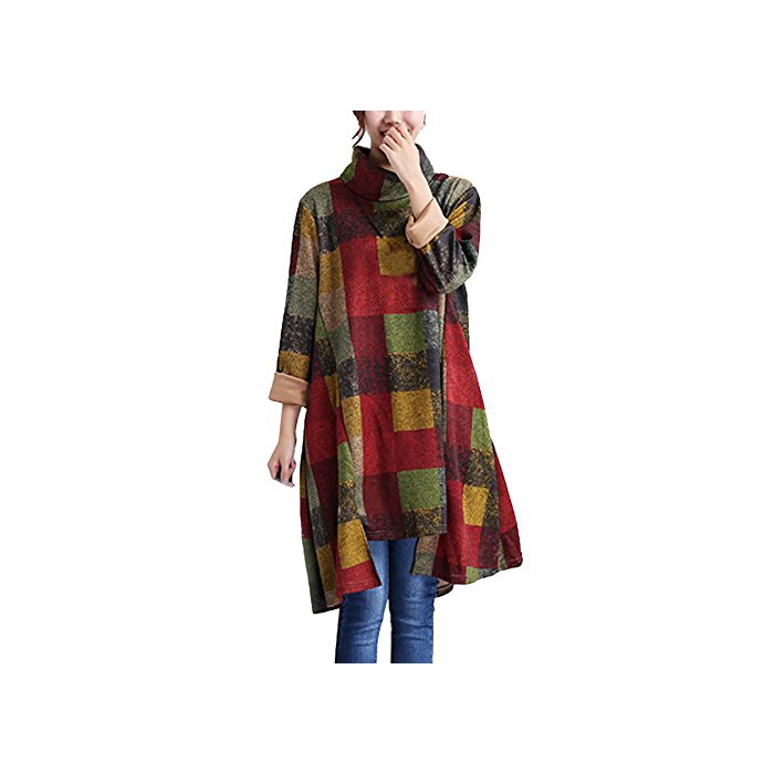 원본상품명: Snoneチェック レディ?ス ワンピ?ス カラフル 長袖 チュニック ワンピ?ス ゆったり ハイネック 4色 M-2XL