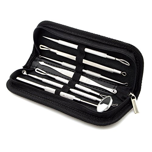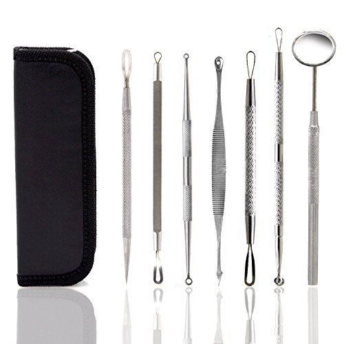 - 7 STAINLESS STEEL INSTRUMENTS & SILICONE CLEANSING PAD - The Blackhead Remover Tool Kit is made with antibacterial and premium 100% dermatologist grade stainless steel, including: Lancet Needle, Various Blackhead Sebum Scrubbers, Different Extractors - Loop and Spoon tools, Mirror and a Cleansing Pad. The silicone cleansing pad is equipped with tiny bristles for deep cleaning of each and every little pore of your face.