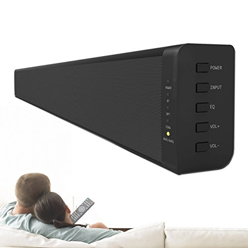 -. Feature : 1.2.1-CH Full Digital Sound System, Stereo Audio System mit High Fidelity Lautsprechern, Super BASS Technologie 60 Watt Enhanced Sound für das authentischste Heimkino / 2.FLEXIBLE CONNECTIVITY OPTIONS Include, CSR bluetooth 4.0, Optical, Coaxial & AUX für maximale TV-Modell Kompatibilität, lässt Sie frei zu wechseln / 3. WICHTIGER HINWEIS: Bitte überprüfen Sie die Steckdose, bevor Sie sie kaufen! Wenn Sie eine Verbindung zu Ihrem Fernseher benötigen, stellen Sie bitte sicher, dass es die AV-Ausgangsbuchse hat, da einige alte TV keine Tonausgabe, nur TV-Eingang unterstützen! / 4.Sleek, Slim TV Soundbar & Gummi schwarz Oberflächenveredelung & hochwertige Tafel, Ständer Wandhalterung für die Montage / 5.LED Indikator Licht, Lautstärketasten an der Seite, mit Fernbedienung für Spiel. Unterstützt 3 Modi von Awesome Audio: TV / Musik / Movie Preset Hörmodi eingebaut, können Sie eine Party werfen, verwandeln Sie Ihr Zimmer in ein Theater. Die beeindruckendste ist die Hollywood-Klangqualität