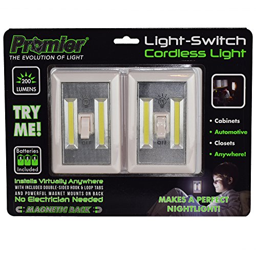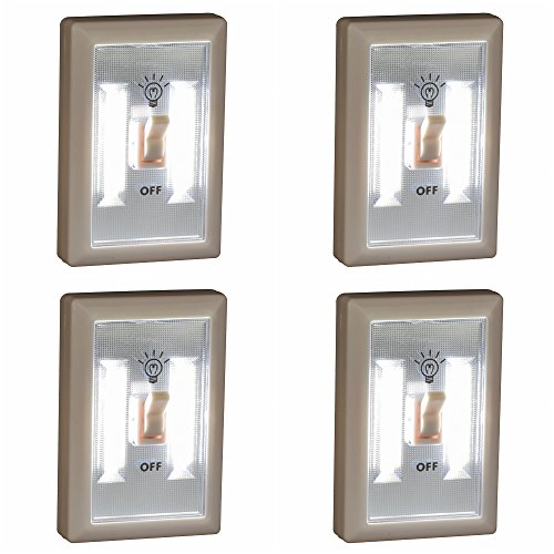 Promier LED Wireless Light Switch, Under Cabinet, RV, Kitchen, Night Light, Counter, or Boat Lighting, 4-Pack, Battery-Operated