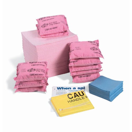 -. Feature : Packed to refill your Pig hazmat spill kit in small wall-mount cabinet / Pig hazmat pads and pillows absorb; wipers clean surfaces and hands / Pig hazmat pads and pillows are specially treated for unsurpassed performance with concentrated corrosives, such as 98 percent sulfuric acid and 30 percent sodium hydroxide / Temporary disposal bags help make cleanup easier / Only Pig spill kit refills feature Pig absorbents proven for rapid response